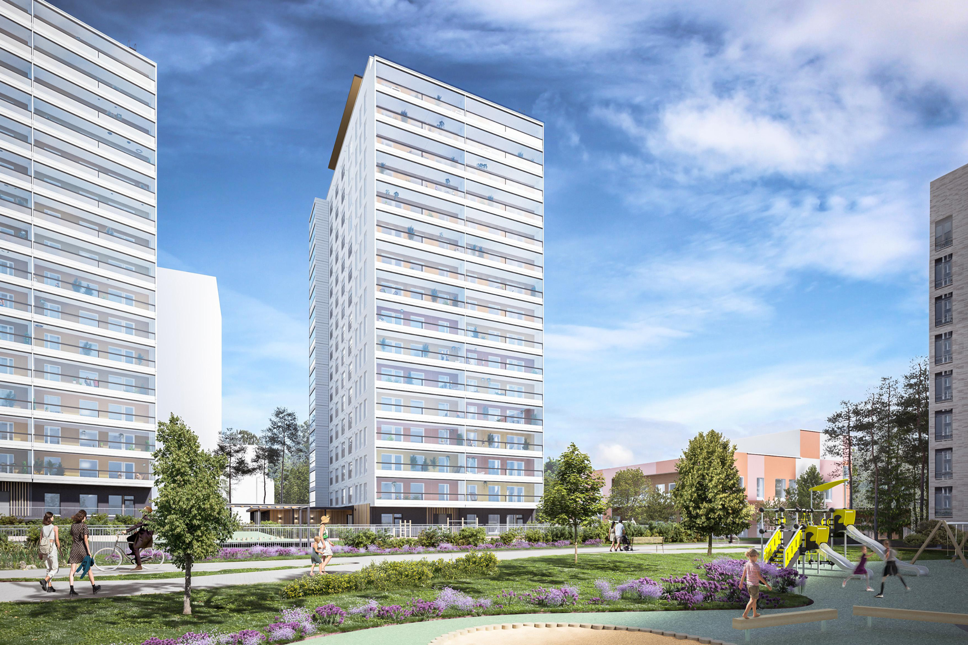 Finnoon keskuksen pohjoispuolella sijaitseva asuinkortteli muodostuu kolmesta 16-kerroksisesta ja yhdestä 23-kerroksisesta asuinrakennuksesta, sekä niitä yhdistävästä maanalaisesta pysäköintilaitoksesta.
